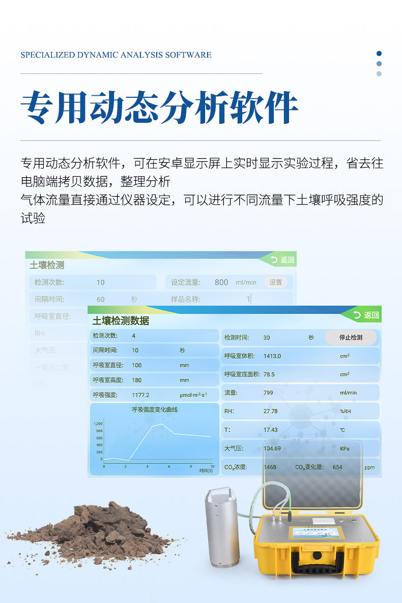 3、氣體流量可通過儀器設(shè)定,可以進(jìn)行不同流量下土壤呼吸強(qiáng)度的試驗;