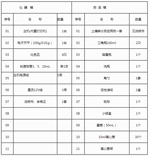 配套齊全:該儀器集藥、器、儀為一體,攜帶方便,相當(dāng)于一個小型實驗室。適于農(nóng)業(yè)服務(wù)部門或農(nóng)資經(jīng)銷商、肥料廠商測土施肥和鑒別肥料真假。